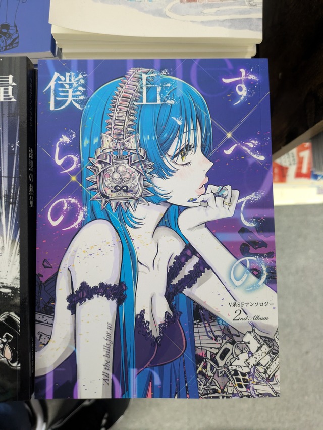 V系SFアンソロジー『漆黒の熱量』『すべての丘、僕らの』が入荷!ギラギラしててかっこいい! 渡邉清文さんのBUCK-TICKの歌詞のコラージュ作品など、小説だけじゃなく詩や戯曲もあります。パワーある! 以下、版元より 「広義のヴィジュアル系音楽をモチーフとした広義の 『V系SFの店』リリース第2弾、フルアルバム、13人の作家による作品を収録したアンソロジーです。 「広義のヴィジュアル系音楽をモチーフとした広義のSF」の名の下に、小説だけでなく、散文、現代詩、戯曲まで、さまざまな表現方法による、幻想文学〜SFのあわいに刻まれた多彩な作品を収録しています。 目次 〈創作〉 大庭繭「ガラスのお城はさざ波に濡れて」(La'cryma Christi) 葉々「永遠のキサ」(Nightmare) 花草セレ「パラサイト・オン・スカム」(Nightmare) 和倉稜「占い師」(Janne Da Arc) 悠人「永遠の雨」(X Japan) 河野咲子「窓だらけの寝室」(Plastic Tree) Mantra Digital「luv garden」(Tohji, Loota & Brodinski) 笛地静恵「危機は川を下る—SF詩の試み」(YES) 天乃こども「V系演劇の展望」(X Japan, Alice Nine, etc..) 佐藤久「戯曲『犠牲、あるいは光の蛇』」(Dir en grey) 渡邉清文「恐るべき子供たち thirty seven mix」(BUCK-TICK) 安斉樹「B→C」(vistlip) 真壁潜熱「幻燈機械」(Plastic Tree) 真壁潜熱「dokumaga galsdays ago ago」(マイナス人生オーケストラ) 〈エッセイ〉 安斉樹 / 佐藤久 / 笛地静恵 / 真壁潜熱 / 渡邉清文 〈V系SF作品ガイド〉 佐藤久 / 渡邉清文 表紙:バにら 編集:渡邉清文、大庭繭