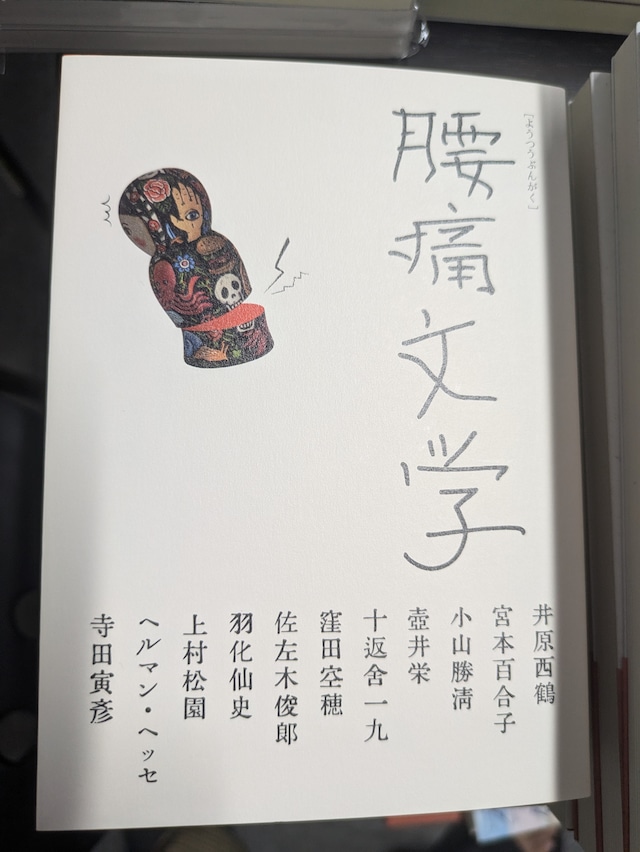 かわいいハンディサイズの文学。のどまる堂はこれまでカフカやジョイスの絵本を刊行してましたが今回は日本文学。 僕も先日ぎっくり腰になったので、これは読まないと! 以下版元紹介↓ 豊臣秀吉に腰を揉ませて、失脚を企む柴田勝家。 孫の成長を優しく見守る、腰の曲がったおばあさん。 驚きのあまり腰を抜かしてしまう幽霊。 そして、坐骨神経痛に悩み、湯治へ向かう作家――。 「腰の痛み」や「腰の変調」を抱えた登場人物たちを集めた小説、随筆、短歌などのアンソロジー。 番外編に、今から117年前に考案された腰痛対策体操も収録。 時代を超えて人々を悩ませる「腰痛」に、文学から鋭く斬りこむ! イタタタタ 目次↓ 井原西鶴『腰抜けの仙人』 宮本百合子『ソヴェト映画物語 ―「新女性線」―』 小山勝清『秀吉の堪忍 柴田勝家の腰もみ』(羽柴筑前守の巻より) 壺井栄『十五夜の月』 十返舎一九『娑婆は沙汰なしの三々九度。騒ぎは腰を抜かした地獄落とし』(あんぽん丹 下之巻より) 窪田空穂『卓上の灯』、ほか 佐左木俊郎『山茶花』 羽化仙史『さあ、しまった!』(探奇小説 旧情婦より) 上村松園『健康と仕事』 ヘルマン・ヘッセ『最初の一日』(湯治客より) 寺田寅彦『ステッキ』 【番外】『誰でもできる簡易体操』(腰痛対策選)国民体育攻究会 編